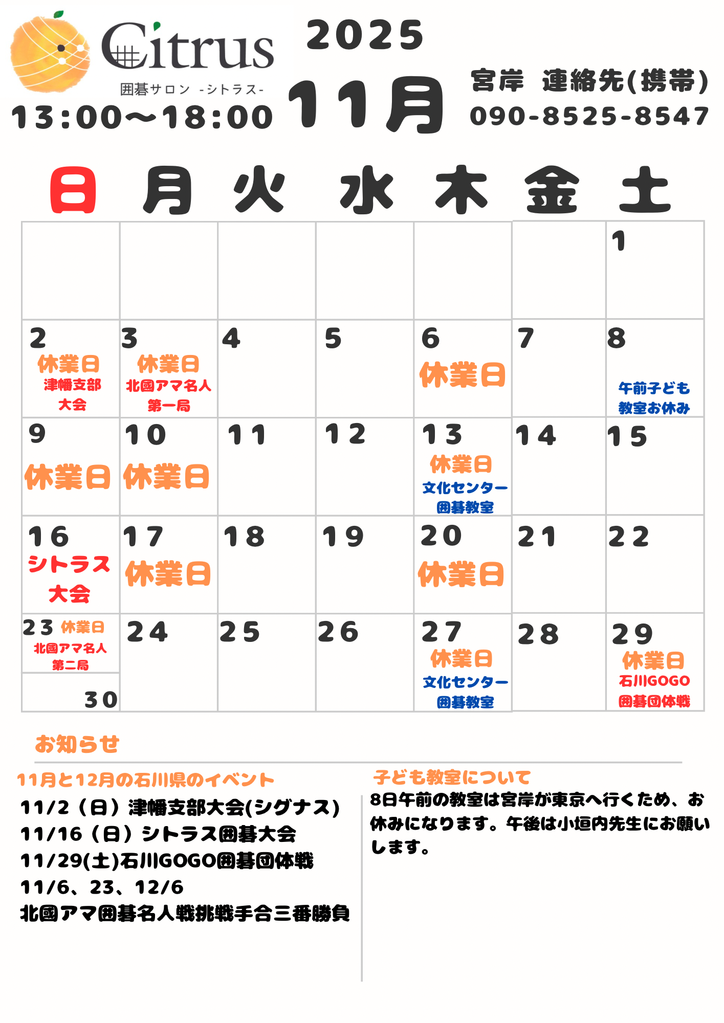 11月のスケジュール